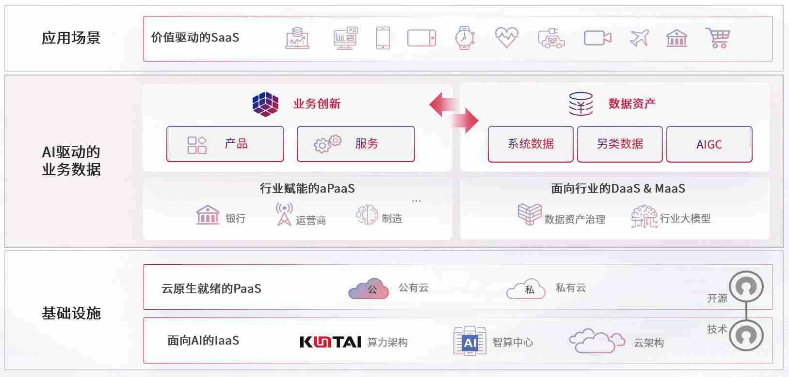 数字时代,,,围绕企业数字化转型的关键要素,,HAHABET数码开创性的提出数云融合战略和技术体系框架,,,着力在云原生、、、、数字原生、、、、AI原生和信创产业上架构产品和服务能力,,,,为处在不同数字化转型阶段的快消零售、、汽车、、金融、、、、医疗、、、政企、、教育、、、运营商等行业客户提供泛在的敏捷IT能力和融合的数据驱动能力,,构建跨界融合创新的数字业务场景和新业务模式,,助力企业级客户建立面向未来的核心能力和竞争优势,,,全面推动社会的数字化、、、智能化转型升级。。。